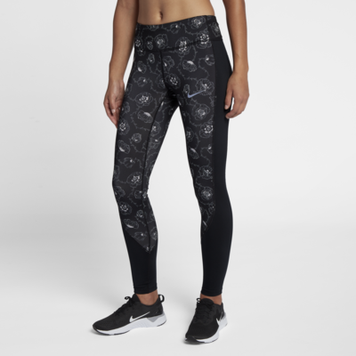 Nike 女款跑步緊身褲採用具有伸縮性和支撐力的材質,搭配網布縫片設計,可在跑步過程中長保涼爽而無後顧之憂。