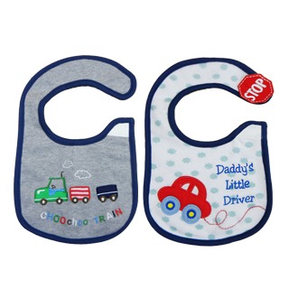 【喬治亞花園】Catasy 防水 精梳純棉 兩件組 圍兜 口水巾(火車與小紅車)