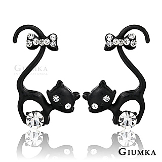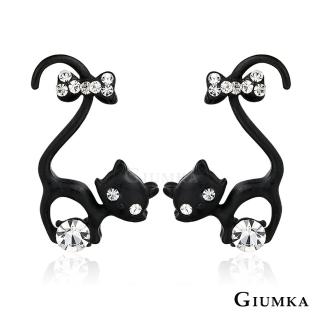【GIUMKA】優雅俏貓咪耳針式耳環 精鍍黑金 甜美名媛款 MF00564-3(黑色)