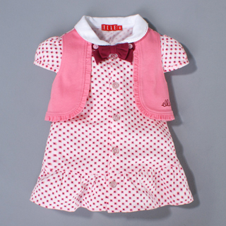【ELLE】女童 甜美假兩件長版上衣(粉紅-丈青)