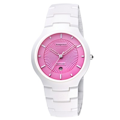 【Arseprince 亞瑟王子】白陶瓷馬卡龍時尚腕錶-桃紅(35mm)
