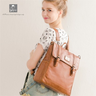 【1-2princess】復古皮革經典雙扣三用(咖啡)