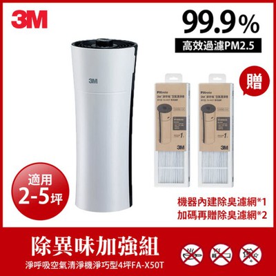選購指南! 搶購資訊!【1231前下單抽義大利來回機票】3M 淨呼吸空氣清淨機淨巧型4坪FA-X50T -適用 2-5坪(加碼送1年份活性碳濾網)...
