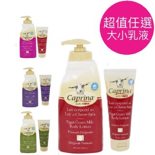 線上DM! 比大賣場還便宜!【Caprina 肯拿士山羊奶】任選經典-牛油果-橄欖油小麥乳液一大一小剛剛好(榮獲加拿大DRP皮膚科審查標章...