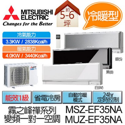 版主誠心推薦【 【MITSUBISHI 三菱】霧之峰-禪系列★5-6坪冷暖變頻一對一(MSZ-EF35NA-MUZ-EF35NA) 】
