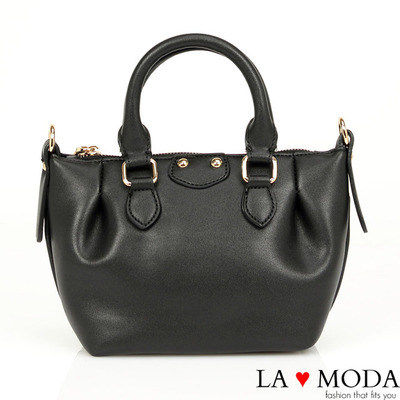 好評 哪裡買【La Moda】小巧精緻名牌經典抓皺水餃包小包(黑色)