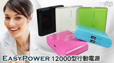 商品訊息簡述: 只要279元(含運)即可購得【Easy Power】原價599元12000型行動電源1台,顏色:黑/白/桃/藍/綠。