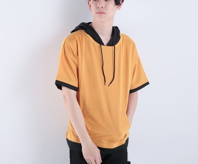 【2019必買商品】休閒假兩件拼色連帽短袖棉T(黃色) 29098 折價券代碼特賣