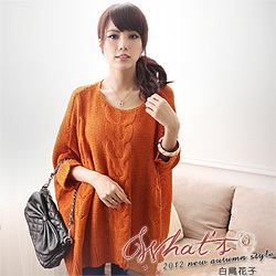 【白鳥花子】浪漫寵心-素面蝙蝠縮袖鉤針衣 (絕美橘)dw