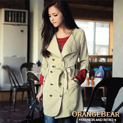 【OB嚴選】雙排釦腰綁帶長版風衣外套 永恆的經典設計,