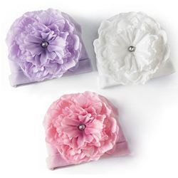 【Mud Pie】192024 小女童粉/紫/白色大花帽 (3入) [彌月禮]0-12m 採用舒適的純棉材質 有三種不同的顏色可搭配 配上大大朵的花 整個都可愛起來了