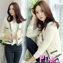 【Pink東大門】高貴氣質˙短版開襟滾邊毛鬚外套(白)