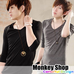 《小猴子的賣場》韓版百搭素面V領七分袖T恤-6色