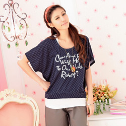 【La Belleza】層次風格‧英文字點點寬領上衣+長版背心