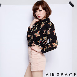 【AIR SPACE】神秘國度彩色十字架雪紡襯衫(神秘黑) 【 AIR SPACE 2013 S/S 】