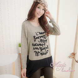 【Magic la.la.】慵懶柔漾 印字配色前短後長上衣(共二色)