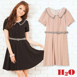 【H2O】拼接領愛心紋腰帶洋裝(共3色)