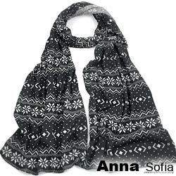 【AnnaSofia】北歐雪花 棉質長圍巾(酷黑系)