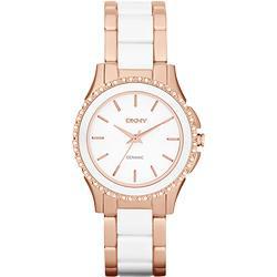 DKNY 陶瓷晶鑽美人女錶-白x玫塊金/32mm