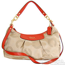 COACH卡其金點狀C Logo橘邊肩背/斜背水餃包