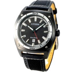 CITIZEN 酷炫光動能運動腕錶 酷黑面盤,夜光指針 日期顯視窗顯示,百米防水 小牛皮+尼龍錶帶 雙材質質感 Eco-Drive環保光動能發電 擁有光動能,能不需更換電池便讓光能轉電能驅動手錶