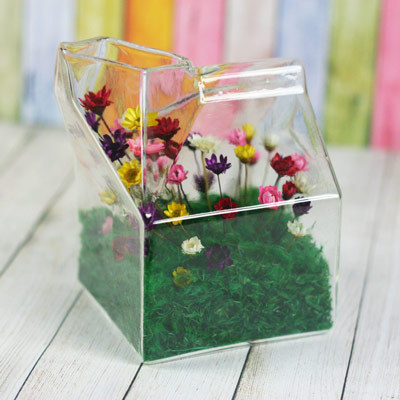 寵物花-新鮮屋Fresh Milk 充滿濃濃文創感的寵物花--新鮮屋款式,趣味的新鮮屋包裝盒設計外型,童趣而獨特,擺在辦公或居家空間,都能為您帶來輕鬆愉悅的生活氣氛,總是喜歡設計新穎的商品嗎?總是對事物有獨到眼光嗎?寵物花新鮮屋款式,是追求獨特的您最佳的選擇喔! ※手工製特殊造型玻璃瓶,為保留瓶身完整性,僅以小開口插入日本高山真花,藝術與技術結合的高級單品,適合重視生活品味的您。