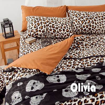 OLIVIA 《狂野個性豹紋 米》標準雙人床包鋪棉兩用被套四件組