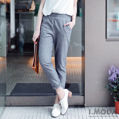 【春氛特賣】時髦都風~細直條紋雙口袋棉麻長褲?2色