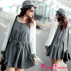 【Pink banana】純情美感˙雪紡拼接拉繩洋裝