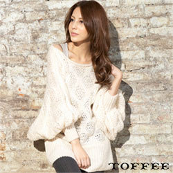 【TOFFEE】清新白甜美花紋蝴蝶袖針織上衣 TOFFEE系列服飾 以個性、簡約、甜美的設計目標為出發 宣導簡約就是美 簡約就是時尚的流行新口號!