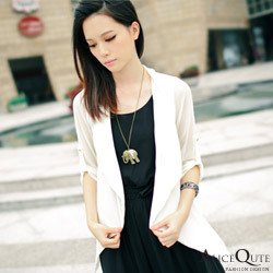 【Alice Qute】韓系後細百摺開襟雪紡綁帶罩衫(共二色)