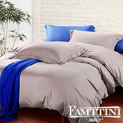 【Famttini-琉光緞彩.紳士米】加大頂級60支活性緞織精梳棉四件式寢具組 本賣場實際出貨內容:薄被套+薄床包x1+薄枕套x2