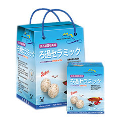 特點: 高過濾效率生化石英濾材,粉塵少。 親水性強、適合生物性生長。 比表面積大、比重小、孔隙為連貫性腔孔。 每公升高達5500平方公尺的表面積。 培養硝化菌最好的材料,強力降低高亞硝酸。 特殊造型更適合創造漩渦水流。