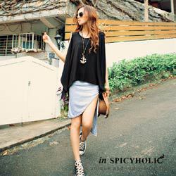 【SPICYHOLIC】韓系休閒‧二件式極簡長洋裝(率性黑) 圓領垂墜感棉質兩件式長洋裝 上衣下擺採用圓弧狀的不規則剪裁 下著搭配側開岔式長裙 修飾身型拉長腿部線條 簡單一件不用刻意穿搭也可時尚有型!