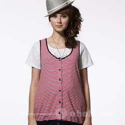 【ohoh-mini】青春洋溢U領條?休閒背心 大U領及寬袖口 強調的是活潑率性 可搭配素色棉T或小可愛 不論扣與不扣,都能呈現與眾不同的流行 再加上配色側邊口袋 可愛指數破表