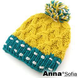 AnnaSofia 大X織混色球球 針織毛線帽(黃系)