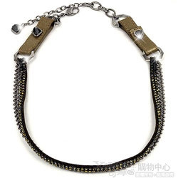 【SWAROVSKI 】金色真皮鍊帶水晶鑲嵌鉚釘項鍊