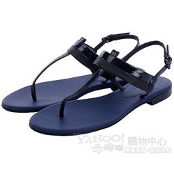 BOTTEGA VENETA 黑藍拼接夾腳涼鞋 優雅雙色完美搭配漆亮元素,展演出精緻時尚的氛圍,搶眼又不失平衡,足見設計師的巧思。