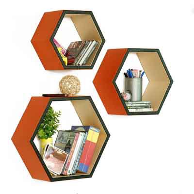 Trista【古味童心】高級手工六角型皮革壁架/置物架-三件套組