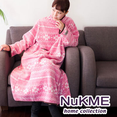 棉花田【NuKME】時尚多功能創意印花袖毯M-粉色雪花