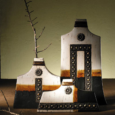 【王者天下】花瓶- 憶江南西塘花瓶(三件組) 享受古風的現代氣息 帶有和風復古氣息的手工花紋,以及方塊造型等帶點光澤的素材使用,能替你營造出華麗優雅的氣氛。