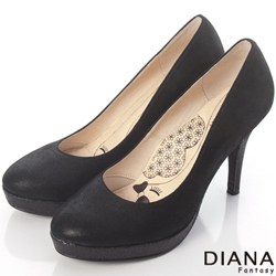 DIANA 超厚切LADY款--珠光真皮高跟鞋-黑