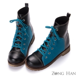 『Zong Han』個性隨選-拚色中統馬汀靴-黑