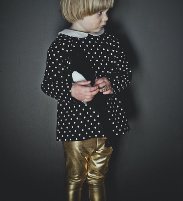 這閃亮到爆炸的金色leggings,摩登又時尚,黑色小面具,酷味洋溢,小女生不走夢幻路線,即使化身架厲害的小超女,扮靚還是要的啊!加上這件金閃閃的配色,真是件讓人過目不忘的時尚單品,媽咪幫小寶貝穿上時,記得把那超人面具露出來喔~