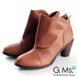 G.Ms.俐落剪裁?三角側釦全真皮粗跟踝靴?摩卡咖
