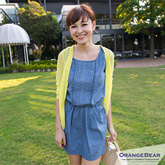 OB嚴選0813新品 清新形象~荷葉邊打摺胸飾棉質無袖洋裝?2色』