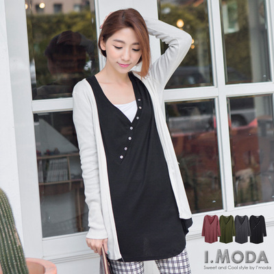 服裝推薦OB嚴選-1227新品 素雅怡人~V領假側開襟造型長版上衣.4色