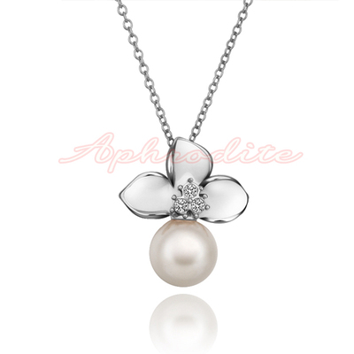 商品訊息描述: 【Aphrodite愛芙晶鑽】氣質花卉典雅珍珠項鍊(白金白色)