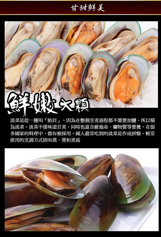 團購3折起-宅配百分百紐西蘭原裝進口全殼淡菜,顆顆經過人工細心篩選,味道鮮甜,肉質爽口,簡單烹煮就好吃,老饕必吃珍味
