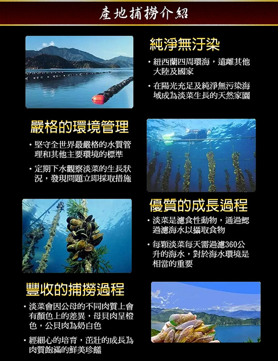 ●生長在紐西蘭純淨無污染的海域,嚴格環境管理,品質安全無虞